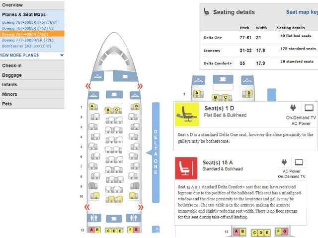 O nosso voo para/de Atlanta era no Boing 767-400 com a configuração dos assentos no formato 1-2-1. Vou focar nesse voo, já que o voo interno nos EUA era configuração normal, apenas com mais espaço para as pernas.