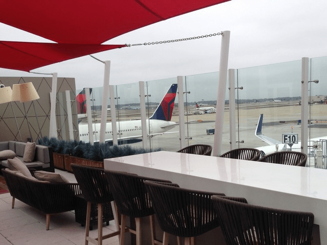 Na volta usamos a sala vip da Delta, a Delta Sky Club em Atlanta. É uma sala diferenciada, com um serviço de primeira e um deck maravilhoso.