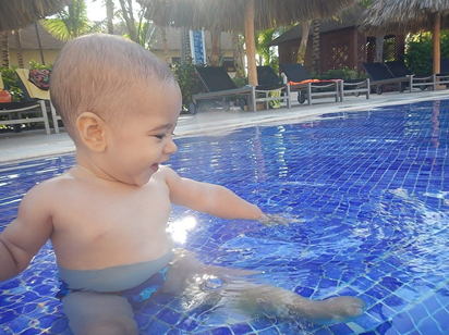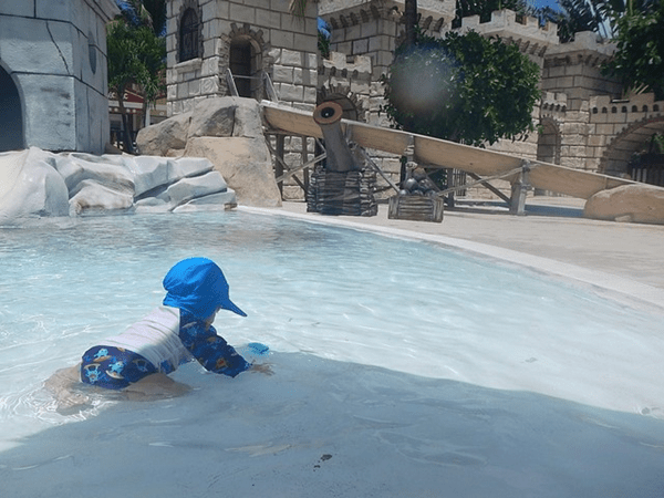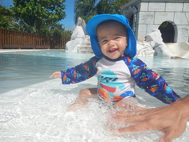 Também adoramos essa parte mais rasinha da piscina, onde o Bê conseguiu aproveitar muito sentadinho ali.