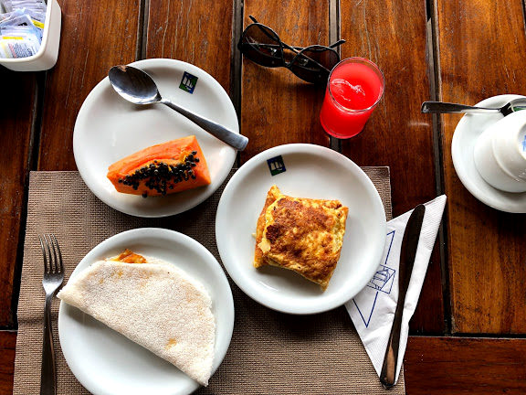 O café no Pérgola contava com frutas diversas, pães e bolos variados, frios e o que mais me encantou: uma estação de tapiocas e omeletes feitas na hora.