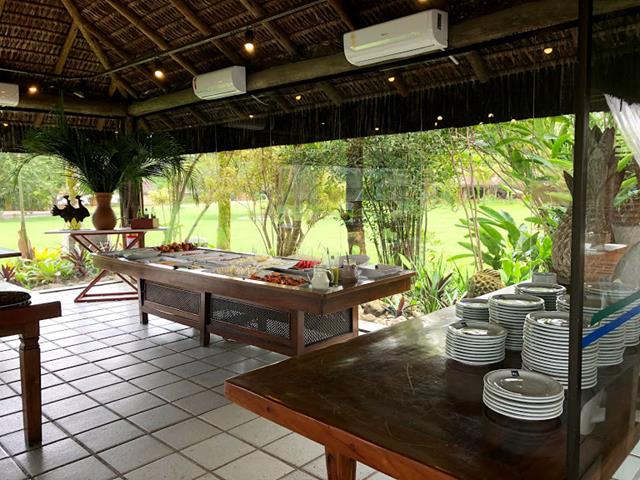 Buffet do café da manhã no Pérgola, que fica ao lado da piscina do Portobello Resort