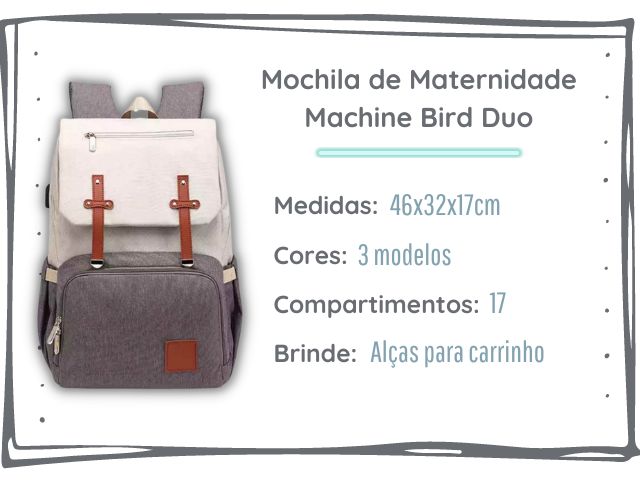 As marcas que indicamos de mochila de maternidade são: Famicare, Machine Bird e Lequeen.