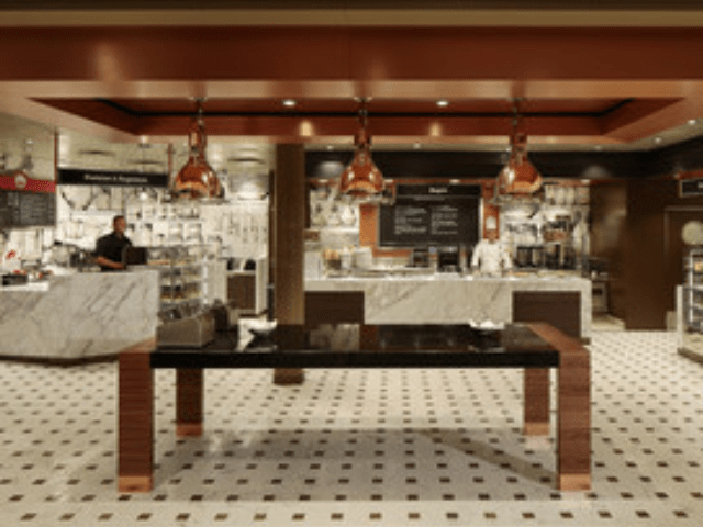 É uma praça gourmet que permite que você escolha uma variedade de paninis, saladas , sopas e muito mais.
