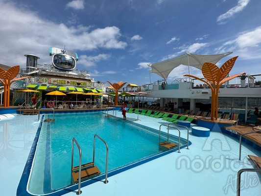 O Odyssey Of The Seas possui 2 piscinas principais, além das piscinas do Solarium, que são exclusivas para adultos.